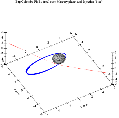 ;; displayTrajectory3D : parse the Bepi Colombo spacecraft trajectory file text and display it in 3D #lang reader SRFI-105 ;; (displayTrajectory3D "/opt/homebrew/var/www/drive/BepiColombo-Mio_MSO-orbit_1min_short.txt" "/opt/homebrew/var/www/drive/BepiColombo-Mio_MSO-FlyBy_1min_short.txt") (module displayTrajectory3D racket (require Scheme+) (require xml (except-in 2htdp/batch-io xexpr?)) ; for: read-lines (require plot) (require racket/pretty) ; pretty print (require qi qi/list) ; Qi flow language (provide displayTrajectory3D) (define (displayTrajectory3D src src1) ;; check we have a .txt file {ext <- src[-4 :]} ; try to get the .txt extension (when (not (equal? ext ".txt")) (error "Not a text file.")) ;; read all lines {input-lines <- (read-lines src)} {vl <- (list->vector input-lines)} {input-lines1 <- (read-lines src1)} {vl1 <- (list->vector input-lines1)} ;; find the basename {basename <- src[: -4]} ; skip the 4 char of extension ;; find the spatial_unit if exist {spatial_unit <- (regexp-match #rx"km" vl[4])} (when (not spatial_unit) {spatial_unit <- (regexp-match #rx"Rm" vl[4])}) (when (not spatial_unit) (error "No spatial unit (km or Rm) found.")) {spatial_unit <- (first spatial_unit)} {tdl <- vl[5 :]} ; TABLEDATA lines, skip the header to go to table data lines {tdl1 <- vl1[5 :]} ;; for points3d we must have a list of vectors of x,y,z (define Lplot1 (for/list ([tr tdl1]) (list->vector (map string->number (rest (string-split tr)))))) (define-qi-foreign-syntaxes $bracket-apply$) {Lplot := (src) ~> read-lines ~> list->vector ~> _[5 :] ~> vector->list ~> (△ (string-split ~> rest ~> (△ string->number) ~> vector)) ~> ▽} (plot3d (list (points3d Lplot #:sym 'dot #:color "blue") (points3d Lplot1 #:sym 'dot #:color "red") (polar3d (λ (θ ϕ) 1) #:color "gray")) #:title "BepiColombo FlyBy (red) over Mercury planet and Injection (blue)" #:x-min -6 #:x-max 6 #:y-min -6 #:y-max 6 #:z-min -6 #:z-max 6))) ; end module